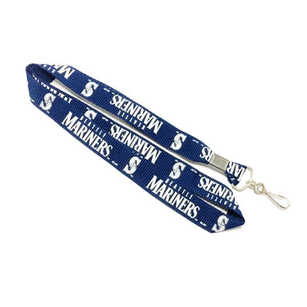 Dark Blue Custom Flat Polyester Lanyard With Logo Crimp Swivel J Hook One Side Images |